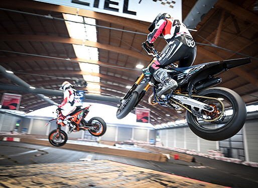 Rund 400 LKW-Ladungen Erde bilden in Halle A4 eine eindrucksvolle Indoor-Motocross-Strecke. Die Strecke entstand durch die Zusammenarbeit zwischen Rennfahrer Reiner Schmidt von Motorsport+Events und dem Bau- und Logistikunternehmen Max Wild. Bei den Indoor-Cross Show-Races gehen jeweils bis zu 15 Fahrerinnen und Fahrer gleichzeitig an den Start und liefern sich spektakuläre Duelle voller Action und Spannung. Mit dabei sind renommierte Motorsportler wie Marcel Schrötter, Lukas Tulovic und der mehrfache Supermoto Weltmeister Marc-Reiner Schmidt aus Friedrichshafen. Weniger staubig, aber mindestens genauso rasant geht es bei den Supermoto Show Races in Halle A5 zu. In den Klassen Kids, Youngster, Cup und Prestige treten Nachwuchs- und Spitzenfahrer gegeneinander an. Zu den Teilnehmenden zählen unter anderem Eileen Hecht aus Meckenbeuren, die bereits im Alter von vier Jahren erstmals auf dem Motorrad saß. Auch Yannick Bärtschi, Schweizer Meister der Königsklasse im Jahr 2022, ist mit dabei. Ein weiteres Highlight bei den Supermoto-Show-Races ist der Weltmeister Bernd Hiemer, der mit seiner BMW R 1300 GS an den Start gehen wird.