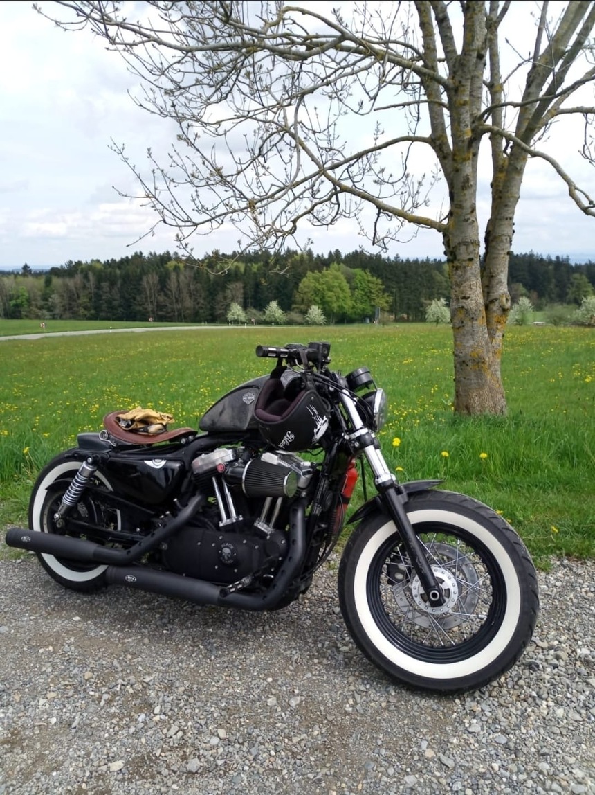 | Extras | Eingetragen im Fahrzeugschein: Fehling Lenker, Seitlicher Kennzeichenhalter, Offener Luftfilter in Kombi mit Auspuff, MCJ Klappenauspuff Manuell, Gekürztes Heck, Harley Davidson Speichenrad |